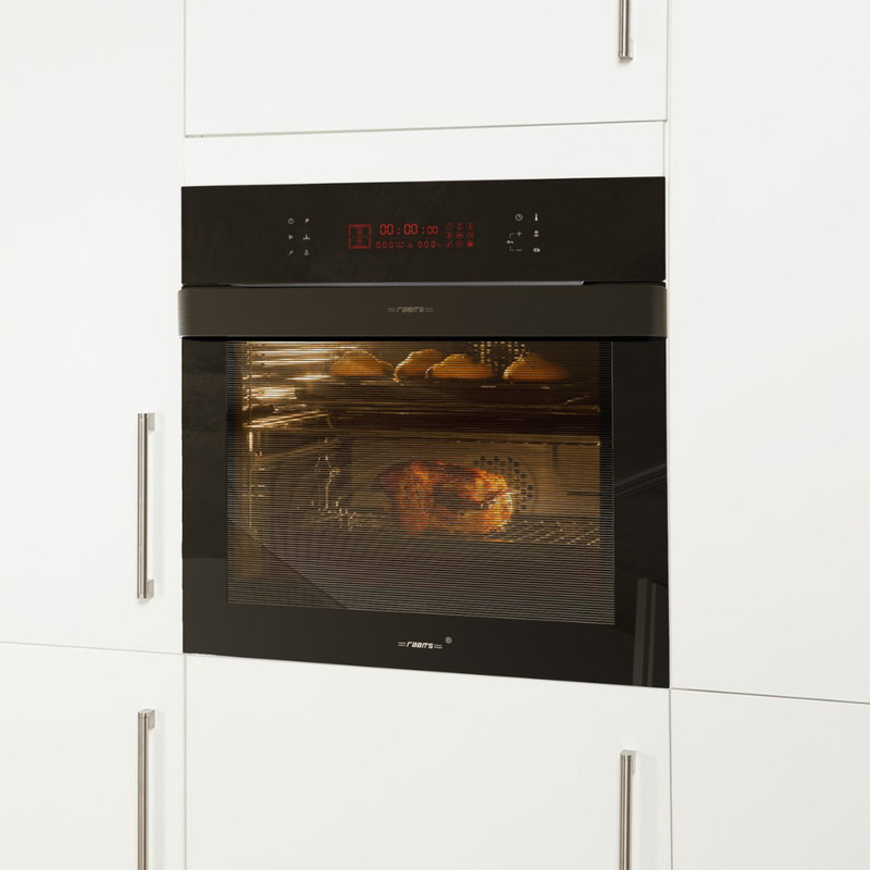 فر برقی توکار رابیتس مدل RO-606 با طراحی شیشهای و محفظهی ۹۰ لیتری یک گزینه عالی برای آشپزخانههای مدرن است. این فر با ۲۰ برنامه پخت مختلف به شما این امکان را میدهد که به راحتی انواع غذاها را با بهترین کیفیت تهیه کنید. محفظه بزرگ و کارآمد آن همچنین برای خانوادههای بزرگ یا پخت غذاهای متنوع مناسب است. این فر مجهز به ۴ المنت حرارتی با توان بالا است که کمک میکند حرارت به صورت یکنواخت در داخل فر پخش شود. علاوه بر این، موتور جوجه گردان و فن کانوکشن با RPM 1000 عملکرد بسیار خوبی در توزیع گرما دارند. سیستم خنک کننده خودکار موتور از گرم شدن بیش از حد دستگاه جلوگیری میکند و سیستم حرکت هوا در جدارههای درب فر باعث حفظ خنکی شیشه در طول استفاده میشود. این فر همچنین دارای تایمر دیجیتال با نمایشگر ساعت است که به شما این امکان را میدهد تا زمان پخت را دقیقاً تنظیم کنید. برای ایمنی بیشتر، فر مجهز به قفل کودک است تا از دسترسیهای ناخواسته جلوگیری کند. همچنین، درب سه جداره آسان باز شو و شیشه سکوریت مقاوم به حرارت برای ایمنی و دوام بیشتر طراحی شدهاند. از دیگر ویژگیهای این فر میتوان به سیستم یخ زدایی، سینی دو طرف لعابی، ریل تلسکوپی، پوشش لعابی آسان تمیز شو (Easy Clean) و سنسور پروب گوشت (Meat prob) اشاره کرد که به راحتی شما را در پخت انواع غذاها یاری میکنند. این فر با داشتن سینی عمیق و شلف استیک پز، تمامی نیازهای آشپزی شما را به خوبی پاسخ میدهد. علاوه بر این، سیستم ایمنی قطعکننده خودکار در صورت بروز مشکل، فر را به طور خودکار خاموش میکند.