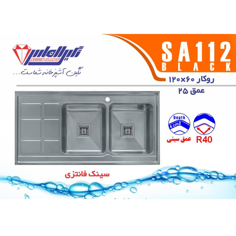 ابعاد سینک: 600 × 1200 میلیمتر