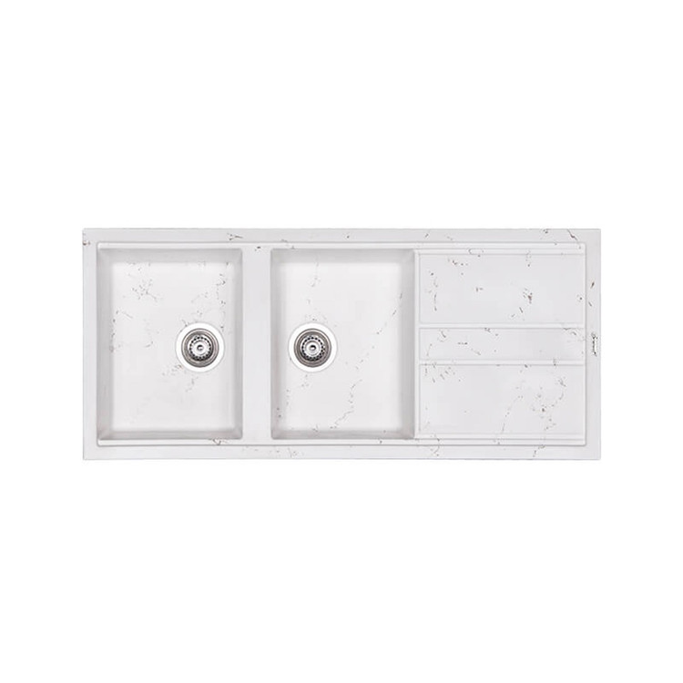 سینک گرانیتی دو لگن مدل ۴ خط لوتوس | سفید با رگه های مشکی – زیبایی، دوام و کارایی در یک قاب